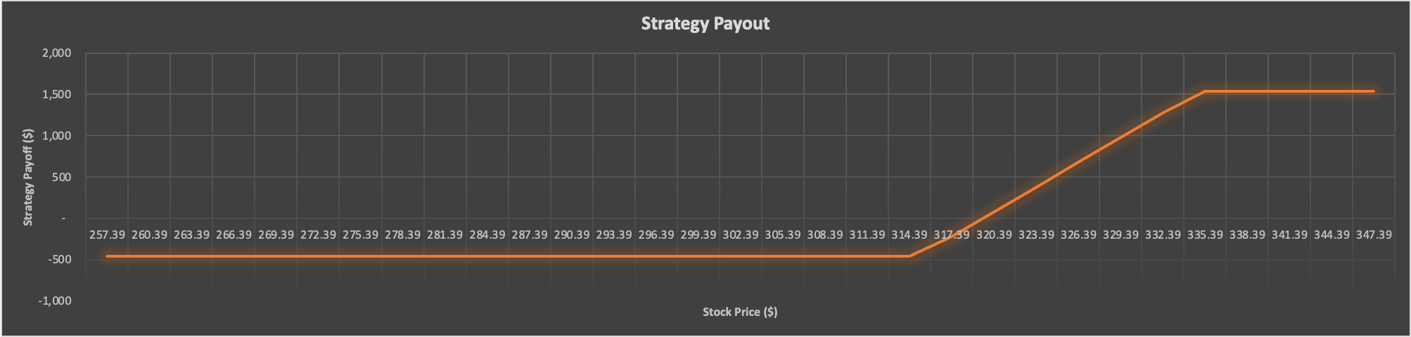 Leg 1: Buy 12 Sep 2025 $315 Call at $6.65